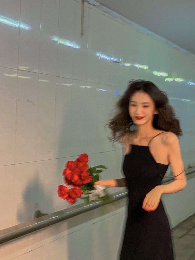 海岛商店四维设计新款黑色气质性感双肩带吊带长裙热门设计联盟服务商
