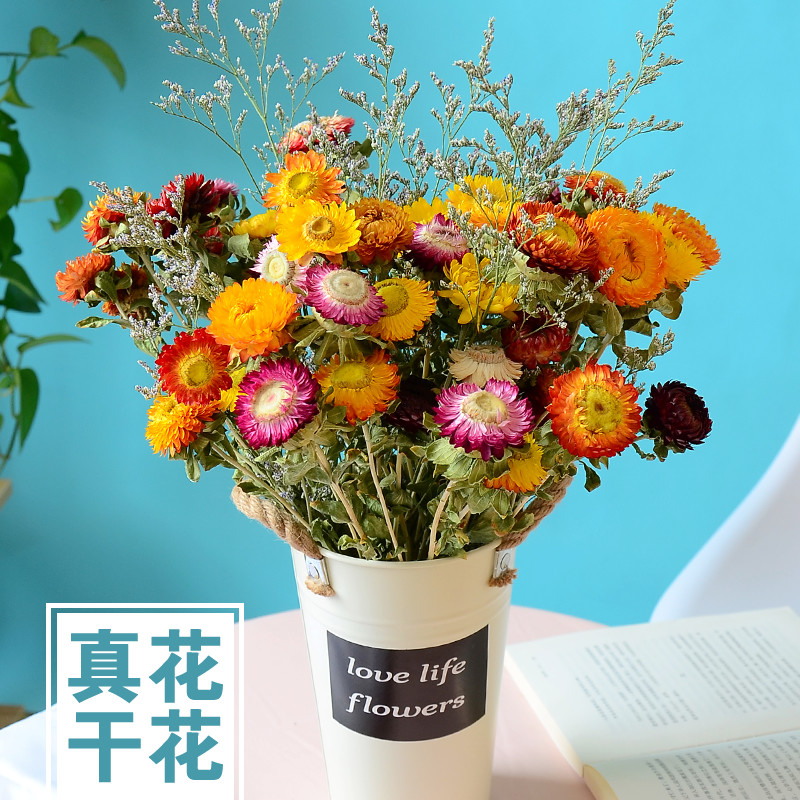 网红干花花束七彩菊麦秆菊小雏菊干花真花小清新装饰摆件家居摆设